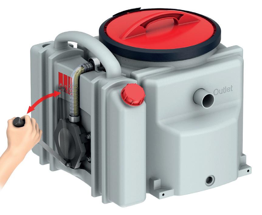 Fonction : collecte des eaux usées avec un gros débit provenant de l'enrouleur du tuyau