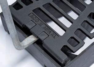 ACO CityTop ® HR okviri opremljeni su integriranim sustavom za pomoć prilikom silaska u okno. U utor na okviru čvrsto se uglavljuje čelični oslonac koji izvođaču radova pruža potporu prilikom silaska i izlaza iz kanalizacijskog okna.