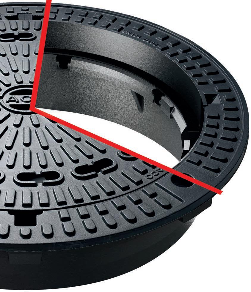 proporcionalno veličini dodirne površine. Zapravo se u detalju događa više: poklopac je čvrsto postavljen na duboku strukturu okna. U usporedbi s krutom strukturom, površina ceste pod prometom relativno snažno vodoravno vibrira. Međutim, više se okvir ne oslanja na okno kao kod standardne konstrukcije, već se može vodoravno pomicati po okomitom vanjskom oblogu okna bez ikakvih posljedičnih oštećenja. Spoj je trajno elastičan zahvaljujući brtvljenju spoja.