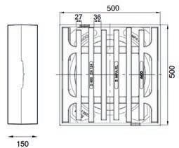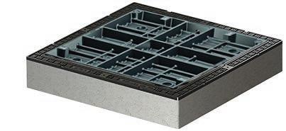 za razrede opterećenja D400 / F900, iz lijevanog željeza EN-GJL-200 (sivi lijev) obloženog betonom C35/45, kvadratni, visine 125 mm