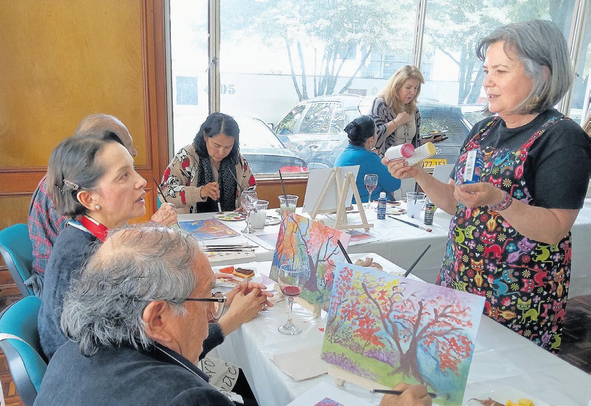 Desarrollamos en la Sede Nacional ACORE un espacio que denominamos “Pintura y vino”, bajo la guía de la profesora Carla Alvear, en el que los Asociados y asistentes elaboraron una pintura mientras compartían una copa de vino y una tabla de quesos; una experiencia que invitó a la desconexión y la expresión artística.