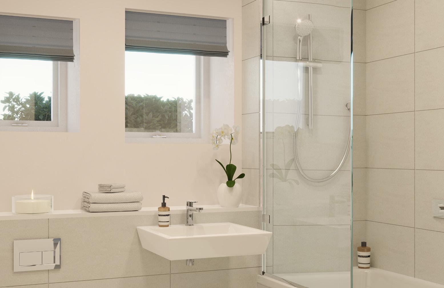 - Wall-mounted slim-line shower head and hand shower to en-suite