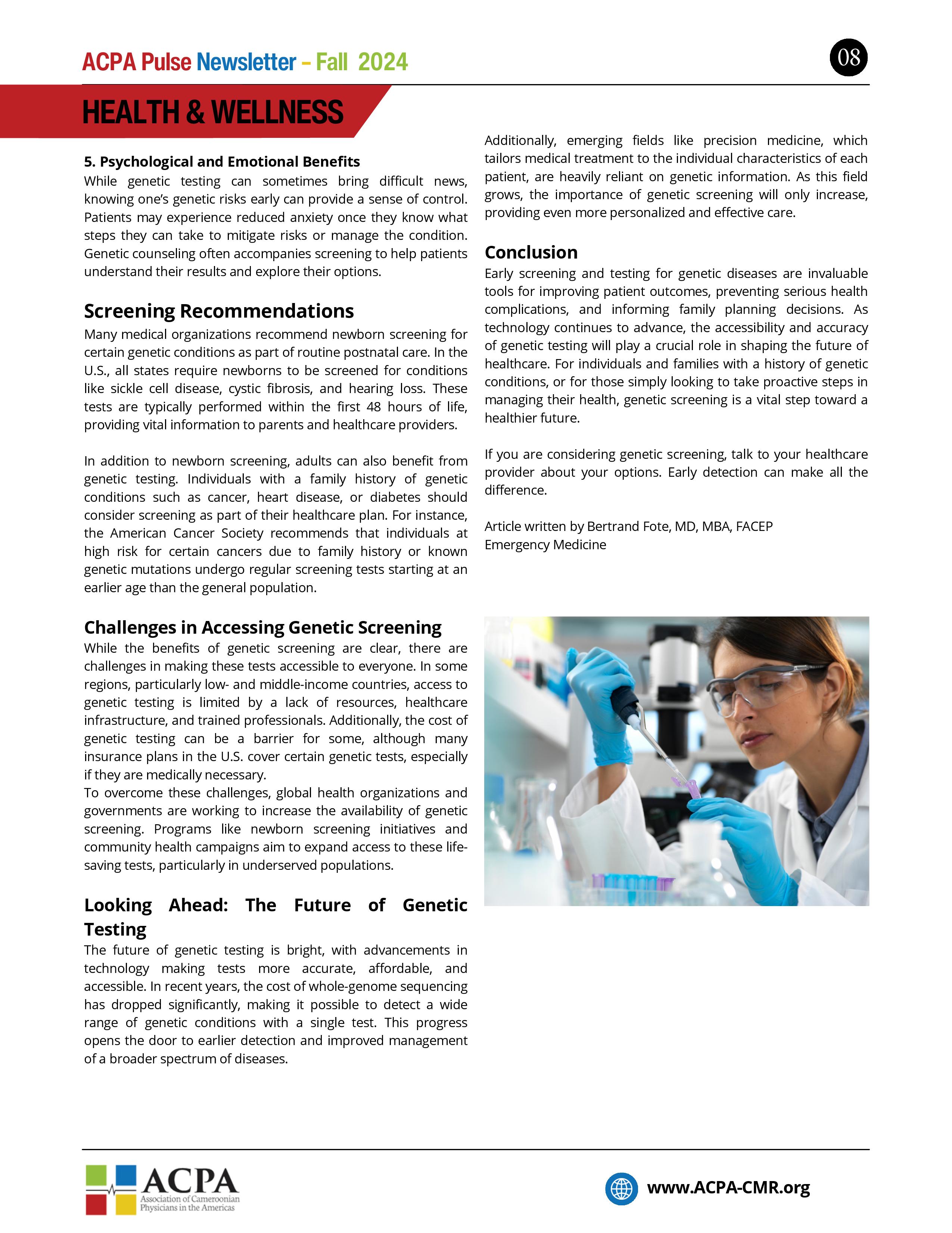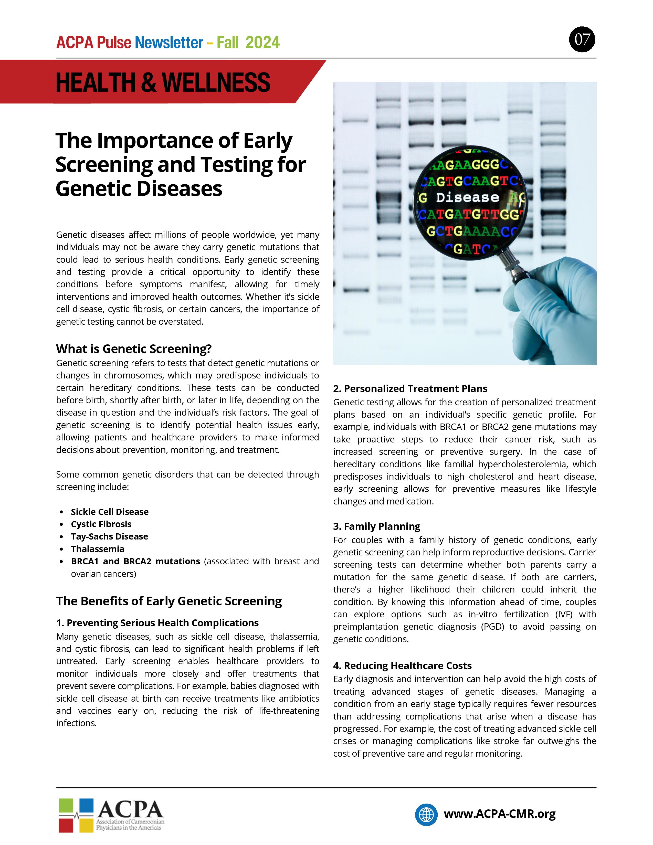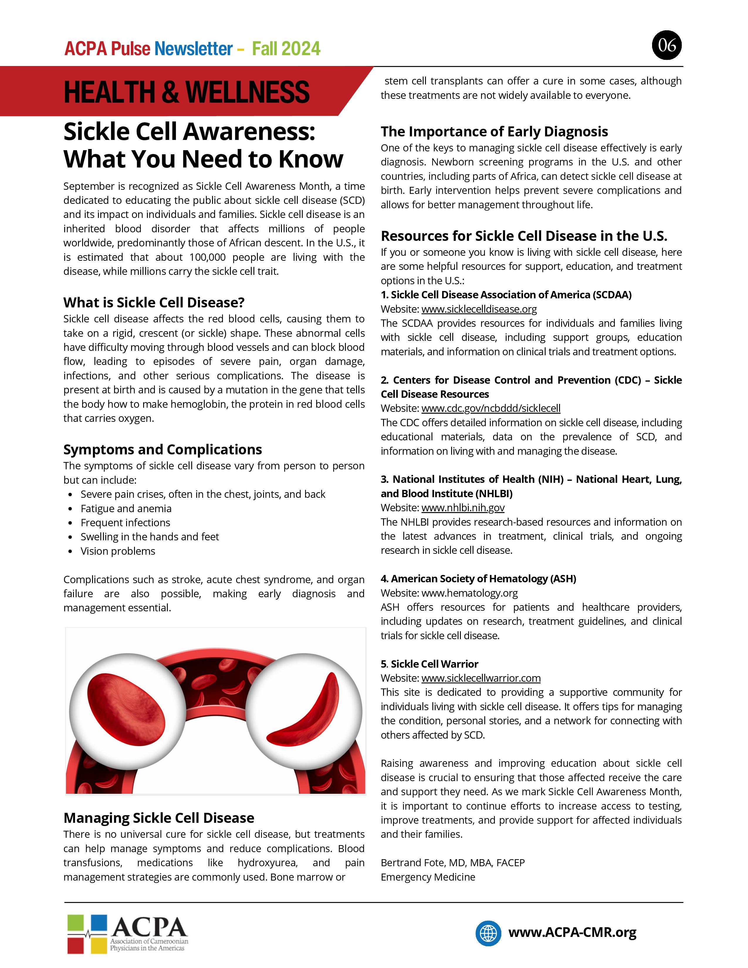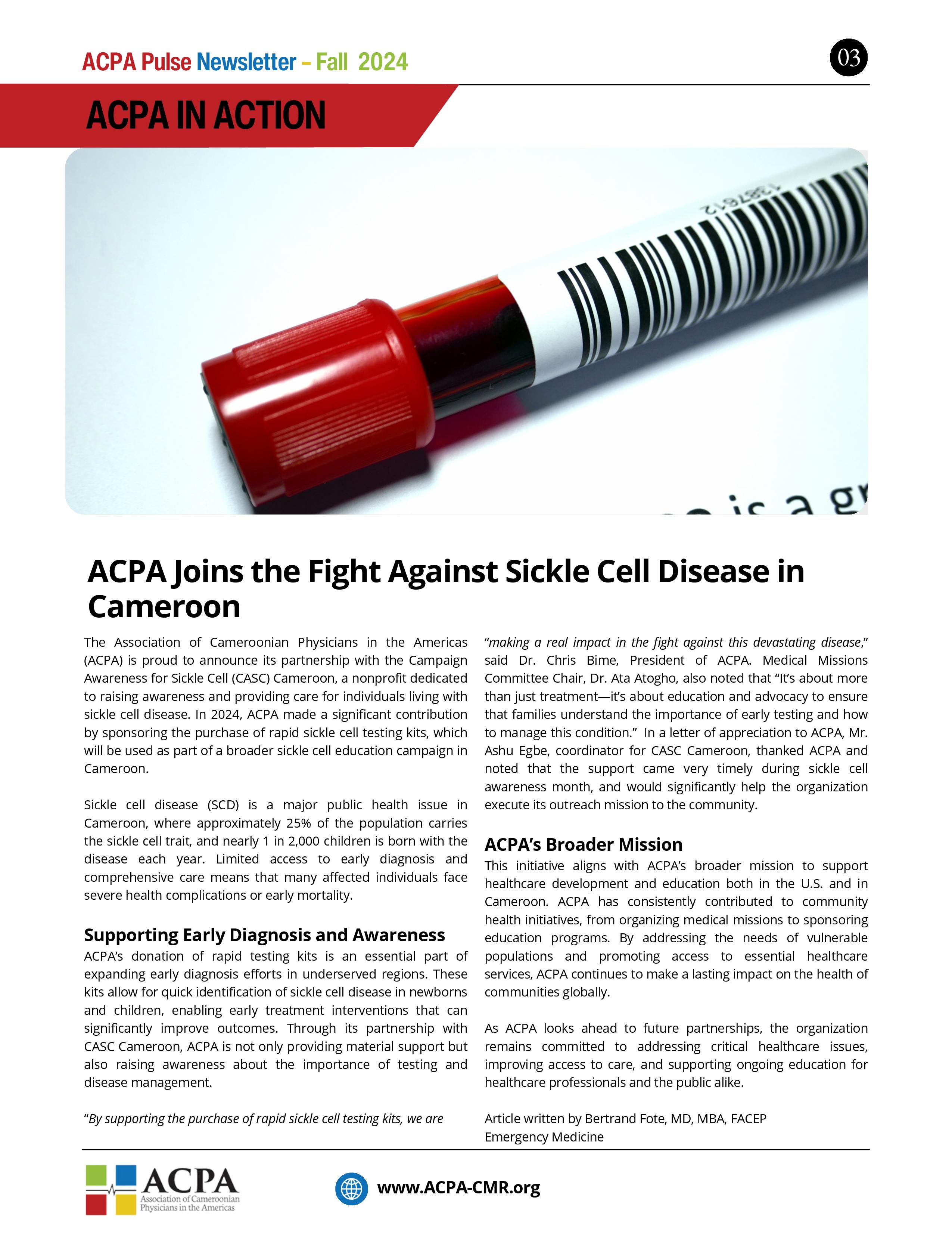 Explore the latest edition of 'The Pulse,' your premier source for connecting with Cameroonian physicians across the Americas. Discover insightful updates, member spotlights, and upcoming events tailored to our vibrant community. Join us in celebrating achievements and staying engaged with the pulse of our association. Dive in now and be a part of the ACPA journey through 'The Pulse'!