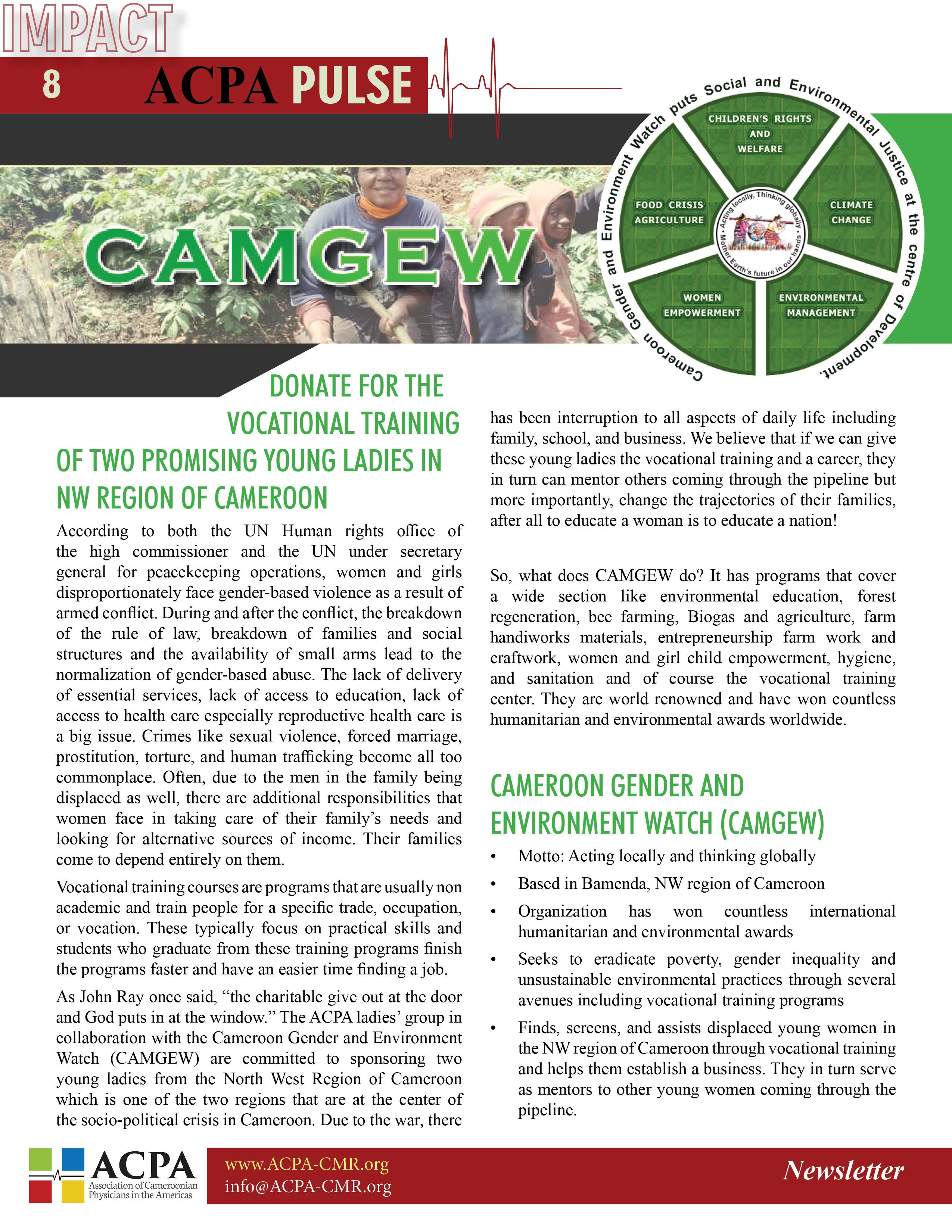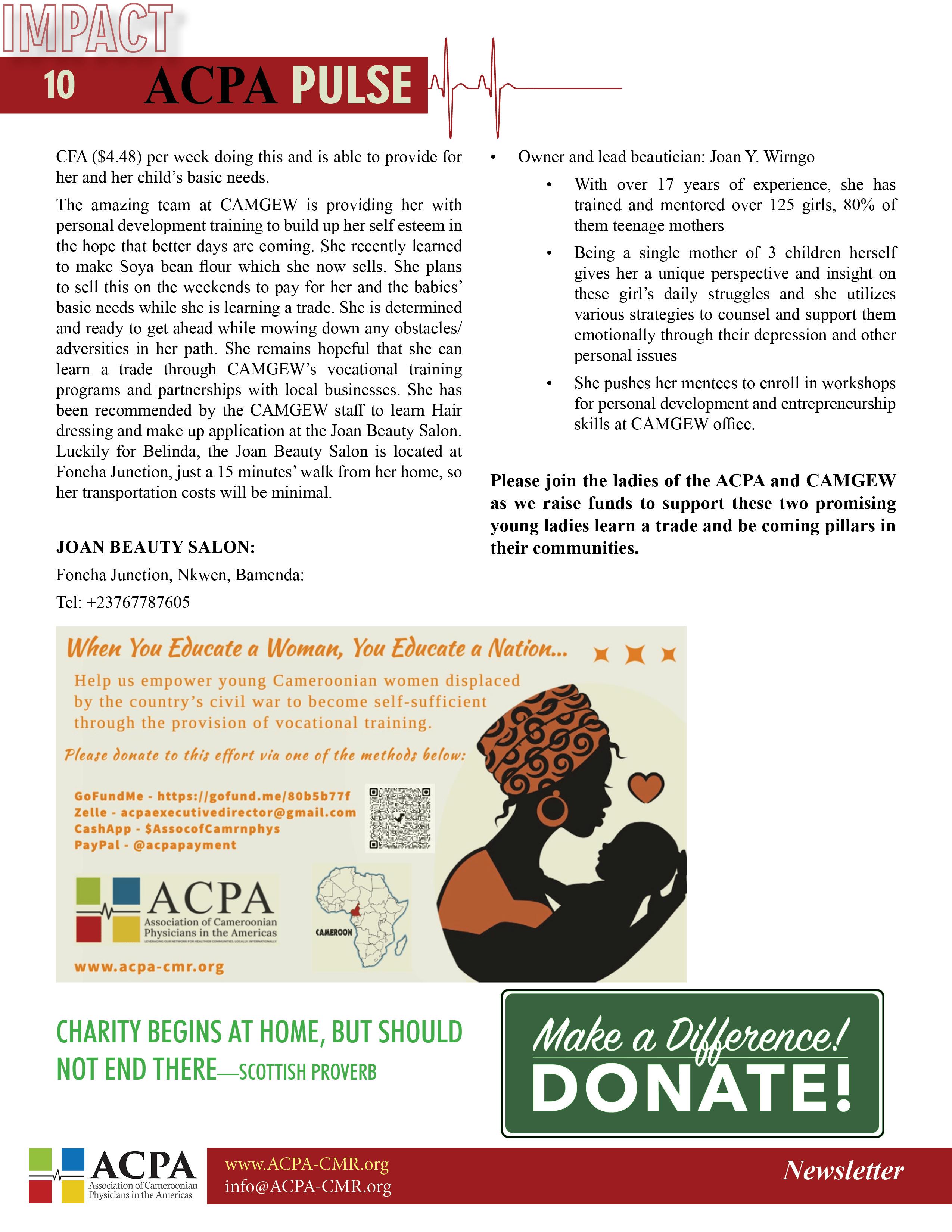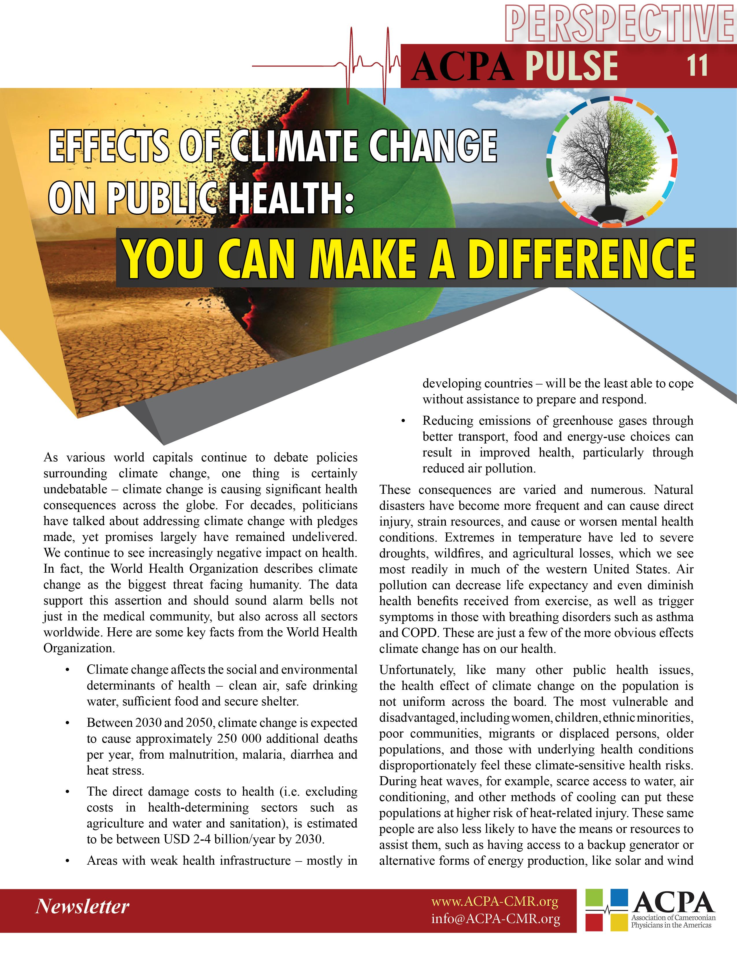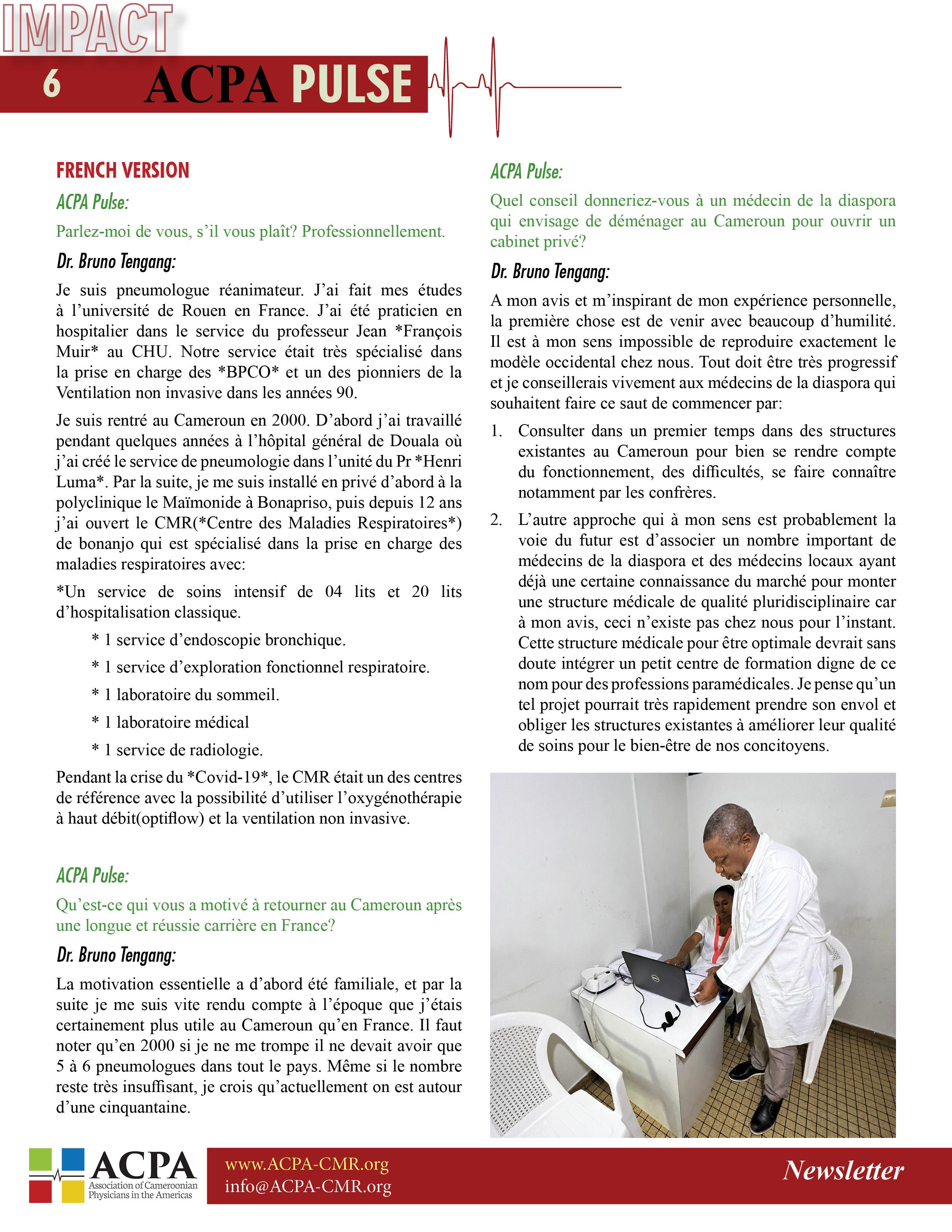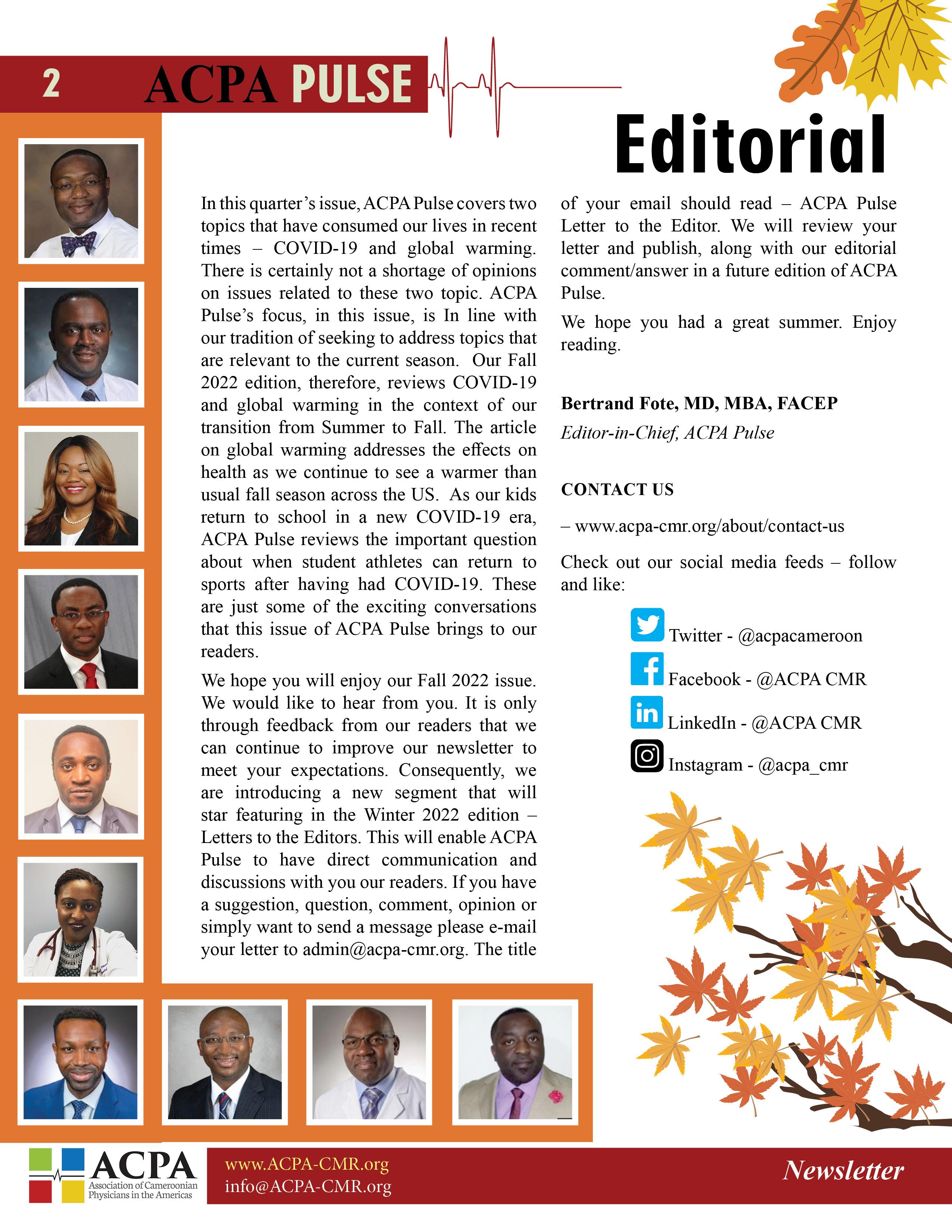 Explore the latest edition of 'The Pulse,' your premier source for connecting with Cameroonian physicians across the Americas. Discover insightful updates, member spotlights, and upcoming events tailored to our vibrant community. Join us in celebrating achievements and staying engaged with the pulse of our association. Dive in now and be a part of the ACPA journey through 'The Pulse'!