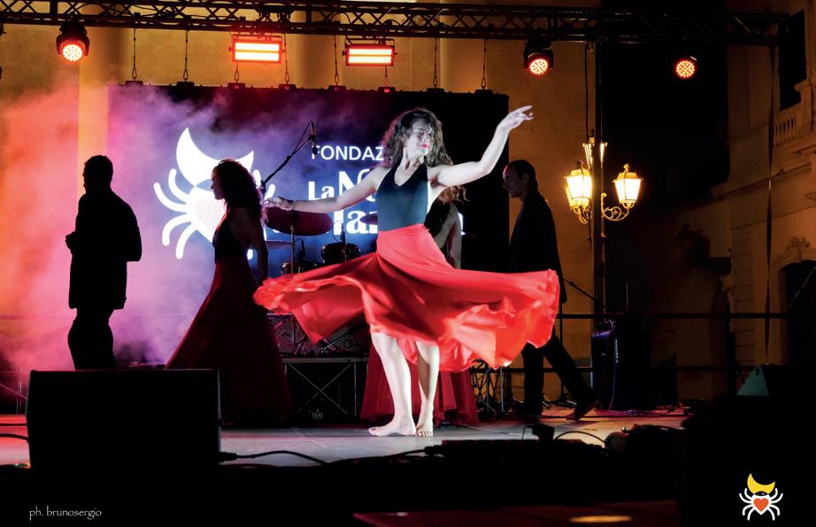 zione con il sostegno di Acquedotto Pugliese e lungi dall’essere costituito dal solo concertone finale, il festival si compone di un ricchissimo cartellone di eventi itineranti che ogni anno animano il territorio salentino durante tutto il mese di agosto. Un programma che quest’anno ha toccato più di 25 borghi e ha coinvolto più di 400 artisti, portando la musica e il ritmo della taranta nei comuni che, abbracciando questa tradizione, hanno goduto di un’importante visibilità. Tre in particolare le tappe che, realizzate in collaborazione con Acquedotto Pugliese, hanno contribuito a raccontare a suon di tamburelli e salti ritmati, l’umanità dell’acqua. Si è partiti da Corigliano d’Otranto con un laboratorio di danza tradizionale e a seguire un momento condiviso con l’intera collettività, con cui si è dato il via alla triade di eventi. L’Orchestra Popolare della Notte della Taranta ha aperto le danze con la manifestazione musicale “Pizzica in scena”, svoltasi nei pressi dello storico serbatoio di Acquedotto Pugliese della città salentina. E così la “Città dell’Acqua” si è animata di un