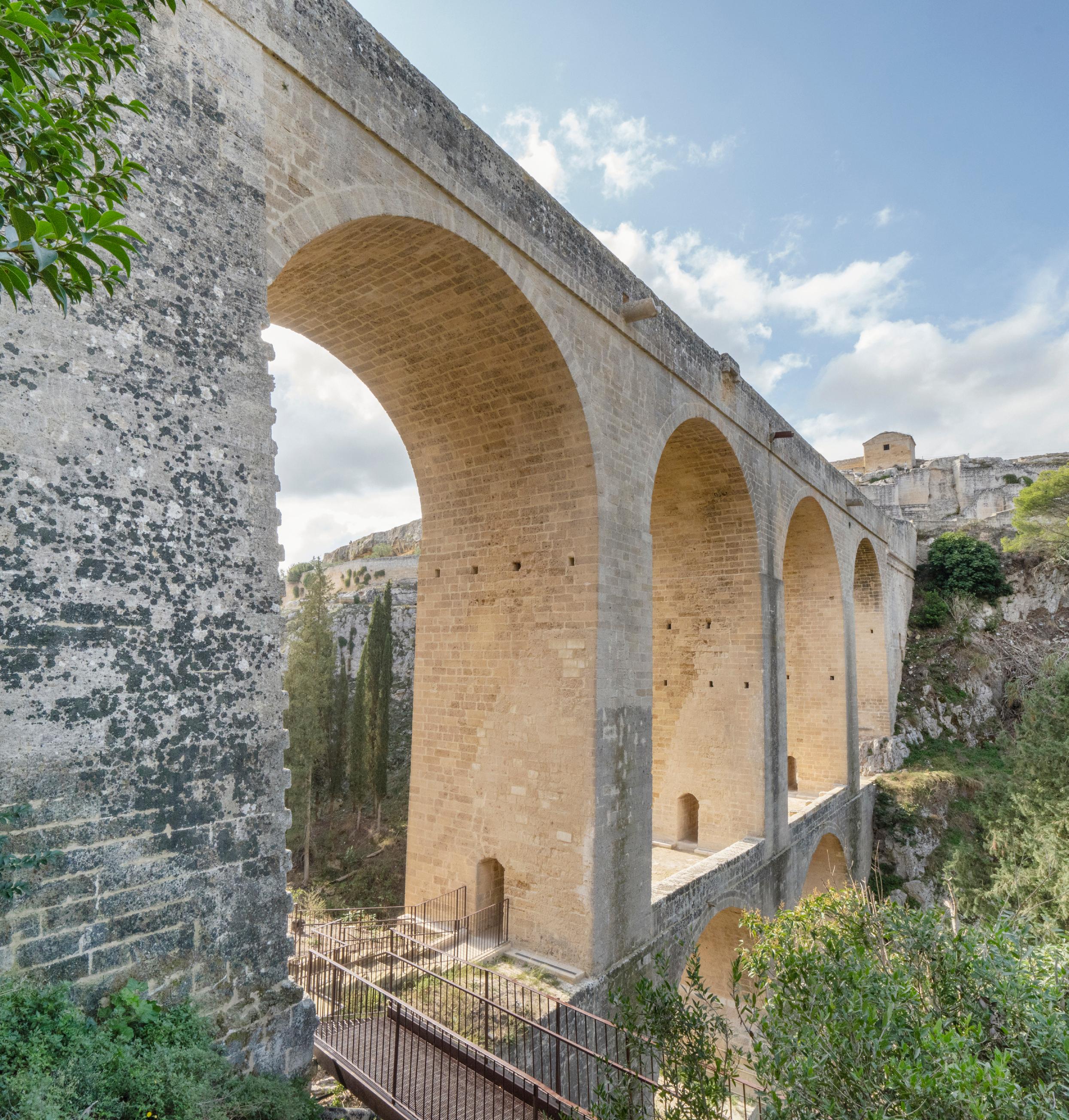 Il Ponte Acquedotto visto con una luce e da una prospettiva inedita. È tornato a splendere in tutta la sua bellezza il luogo simbolo di Gravina in Puglia, emblema del territorio e simbolo identitario di grande valore. Un luogo magico e maestoso, alto 37 metri e lungo 90, che collega le due sponde del torrente Gravina. Un ponte che richiama senso di identità, quello di una comunità fiera ed in cammino. Ha scandito il tempo della fatica di generazioni di contadini che ogni giorno si recavano al lavoro nei campi e delle lavandaie. Quel ponte, il cui selciato ha risuonato dello scalpitio dei cavalli e delle bestie da soma e che ha conosciuto per generazioni le corse frenetiche ed i giochi dei bambini, amplificandone l'eco delle loro voci. Un simbolo al centro di set cinematografici internazionali che si sono avvicendati: Joaquin Phoenix che attraversa il ponte nei panni di Gesù per raggiungere il Getsemani,