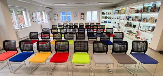 šití drátem na stříšku i se závěsnými očky, lepené brožury, brožury šité drátem, brožury šité nití, zavěšování do spirály drátěné i hřebenové, práce na univerzálním lepicím stroji Moll, skládání, snášení