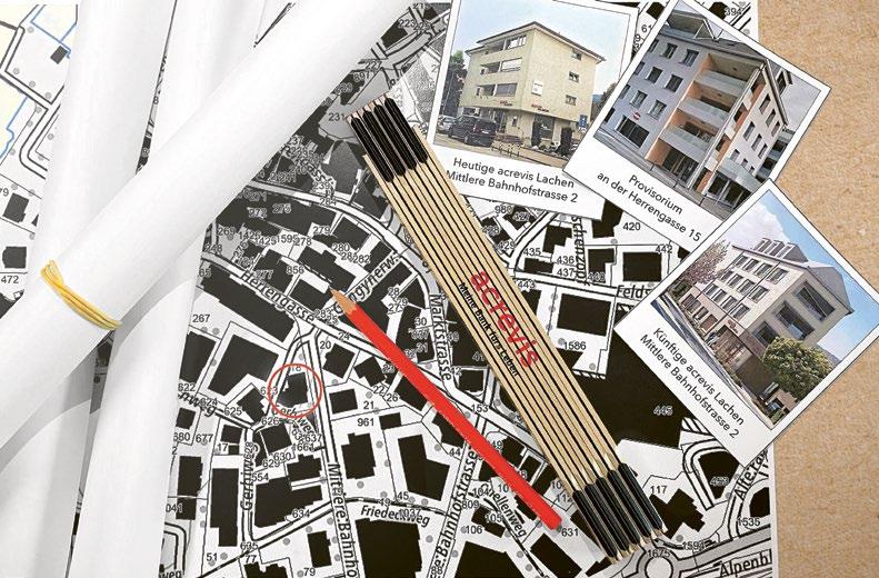 Auch während der Bauzeit für die Kunden da Der Rückbau der bestehenden Liegenschaft ist bis Mitte Februar 2023 geplant. Bereits auf den 19. September 2022 zog die acrevis Bank Lachen in ihr Provisorium an der Herrengasse 15. «In der Fussgängerzone und in unmittelbarer Nähe des bisherigen Standortes gelegen, ist der provisorische Standort gut erreich bar», hält Enrico Perotto, Leiter Niederlassung Lachen, fest. «Hier steht unser Team allen Kundinnen und Kunden wie gewohnt mit umfassenden Finanzdienstleistungen und kompeten ter Beratung in den Bereichen Wohneigentumsfinanzierung, Finanzplanung und Vorsorge, Private Banking mit Anlagebera tung und Vermögensverwaltung sowie KMU-Finanzierungen zur Verfügung.» Bargeld-Transaktionen (in CHF und EUR) sind am Bancomaten der neuesten Generation möglich. «Erledigen Sie Ihre alltäglichen Bankgeschäfte in Lachen unkompliziert und sicher auch ohne klassischen Bargeldschalter. Wir helfen Ihnen während der Öffnungszeiten gerne, sich mit den Möglichkeiten vertraut zu machen, und zeigen Ihnen, wie Sie beispielsweise die acrevis Debit Mastercard oder das acrevis E-Banking für Ihre Bedürfnisse optimal einsetzen können. Zudem kann Bargeld einfach per Post nach Hause bestellt werden», so Enrico Perotto.