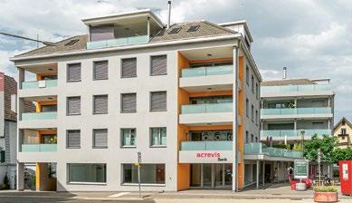 Die Umgebung wird mit Rabatten und mehreren Bäumen grosszügig begrünt, die Platzgestaltung vor dem Eingang zur Bank schafft eine gestalterische Verbindung von privatem und öffentlichem Aussenraum. Beim Bau wird der Nachhaltigkeit Beach tung geschenkt, zudem wird auf dem Dach eine Fotovoltaikanlage installiert und das Gebäude an das CO₂-neutrale Fernwärmenetz der Energie Ausserschwyz AG angeschlossen. Enrico Perotto: «Wir freuen uns schon jetzt auf die neue acrevis Niederlassung Lachen! Die acrevis Bank AG bedankt sich bei allen Kundinnen und Kunden für das Vertrauen sowie die Treue auch im Provisorium. Auch während der kommenden Bauzeit sind wir gerne für Sie da –als Ihre Bank fürs Leben.»
