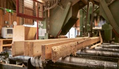 Erfahrung und das richtige Augenmass «Es läuft», freut sich Pirmin Fischbacher, Besitzer und Geschäfts führer der Innoholz AG. Seit 2008 leitet der gelernte Forstwart die Sägerei in Gähwil bei Kirchberg mit seiner Frau Anita, ehemals Köchin und nun für das Büro des Betriebs mit sechs Angestellten zuständig. Damit es läuft, braucht es nicht nur eine gut gewartete Anlage, sondern auch das Zusammenspiel aller Mitarbeitenden und vor allem «viel Erfahrung und Routine». Der Kranführer auf dem Schienenkran pickt sich die passenden der rund 3’500 Stämme im Lager heraus – er muss den Blick dafür haben, was es für die gerade anstehenden Kundenaufträge braucht. Ein gutes Augenmass braucht auch der Maschinist, der die Säge vom Führerstand aus beschickt: Eine Laseranzeige markiert die Posi-