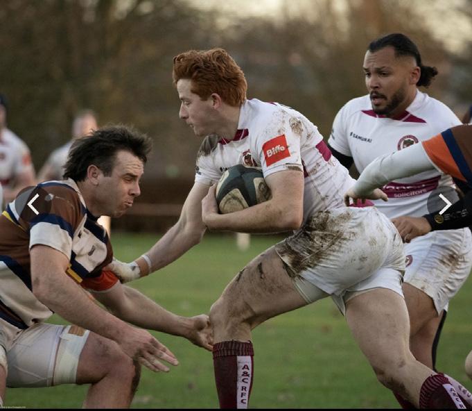 Two away games were meant to follow, but the first, away at Old Northamptonians, fell victim to Storm Darragh. We will now go up the M1on 25 January. We played the second away game last week, at Southend. It was another high-scoring affair, but unfortunately we went down 45-34. I say unfortunately, because our six tries were one more than Southend managed. On balance, though, it was a fair result: we gave away too many penalties and once again only had fifteen players for threequarters of the match. Our forwards were on top, but they had a lot of pace behind and their 10 is an exceptional player at this level. These results mean that we have slipped back to eleventh place in a table of twelve, albeit with a game in hand.