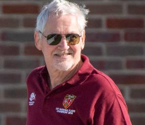 Peter, pictured here, always in his A&C attire, chatting on match day