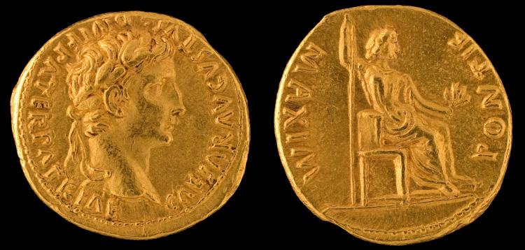 Augustus. Gold Aureus of Augustus, Lugdunum, 7.77 g. 13–14 CE. https://jstor.org/stable/community.9483293.
