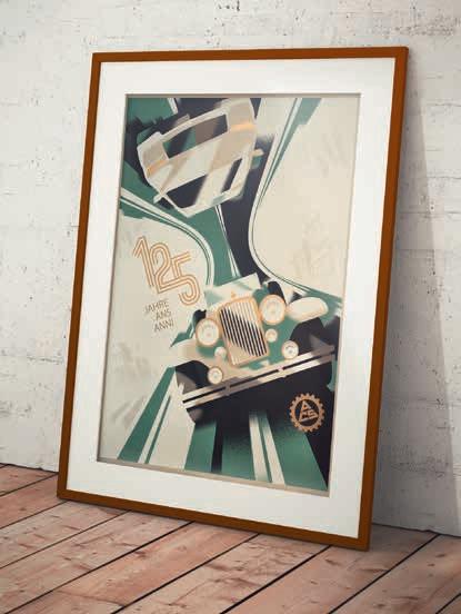 Mit einem einzigarten Plakat im Format A1, das in limitierter Auflage von nur 125 Stück produziert wurde, schafft der Automobil Club der Schweiz ACS eine illustrierte Hommage an die Zeit der Rennsportplakate. Zu jedem ACS Jubiläumsplakat gibt es ein nummeriertes Zertifikat. Die 125 Plakate wurden im Siebdruck mit fünf Spezialfarben gedruckt. Das gedruckte Rotgold enthält echtes Silber – es sorgt für einen reizvollen metallischen und irisierenden Effekt. Der Illustrator und Künstler Mads Berg aus Dänemark hat das Sujet in enger Zusammenarbeit mit in flagranti design entwickelt. Gedruckt wurde es im Siebdruckatelier Lorenz Boegli, Müntschemier.