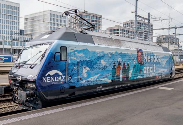 Als erste Schweizer Destination «brandet» Nendaz eine Personenlokomotive der SBB. Die Lok zirkuliert im Destinations-Look auf dem nationalen Fernverkehrsnetz und wird dabei rund 285 000 Kilometer zurücklegen.