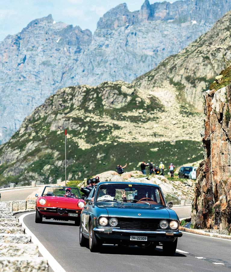 ZWEI TOLLE FAHRVERANSTALTUNGEN FÜR ACS CLASSIC FANS Dass der Frühling ein idealer Zeitpunkt für Ausfahrten mit Old- und Youngtimern ist, stellten einmal mehr zwei bereits zur Tradition gewordene Veranstaltungen unter Beweis. Unter der Leitung von ACS Classic Spezialist Christoph Bleile führte eine dreitägige Ausfahrt unter dem Motto «Kurven und Kulinarik vom Feinsten» Mitte Mai via Splügenpass ins Südtirol nach Riva del Garda. Eine abwechslungs- und erlebnisreiche Ausfahrt, die rundum begeisterte. Und vom 2. bis 4. Juni 2023 nahm der ACS mit zwei tollen Gruppen an der 10. Ausgabe der Lenzerheide Motor Classics LMS teil.