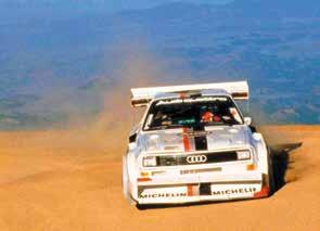 Nel 1980 l’Audi quattro debutta al Rally dell’Algarve (Portogallo), e la vettura guidata da Mikkola corre fuori classifica perché l’ammissione delle 4x4 al campionato verrà consentita soltanto dall’anno successivo, ma lo sproposito di 26 minuti di vantaggio rifilati al primo classificato non sono altro che il presagio di quanto sta per accadere. Una nuova Era è alle porte: nell’81 l’Audi stravolge il mondiale Rally al punto di imporre alle altre case automobilistiche un adattamento radicale per poter stare al passo con i tempi. Soltanto la Lancia 037 a trazione posteriore riuscirà a contrastare l’avanzata tecnologica per un anno ancora, ma la traccia è ormai segnata. Il suono e le imprese dell’Audi e dei piloti come Mikkola, Mouton, Blomqvist e Röhrl restano indimenticabili. Prima di passare ai circuiti, l’ultima impresa leggendaria è il trionfo di W.Röhrl alla Pikes Peak nell’estate del 1987, la cronoscalata più celebre del mondo che porta a sfiorare le nuvole oltre i 4000m d’altitudine.