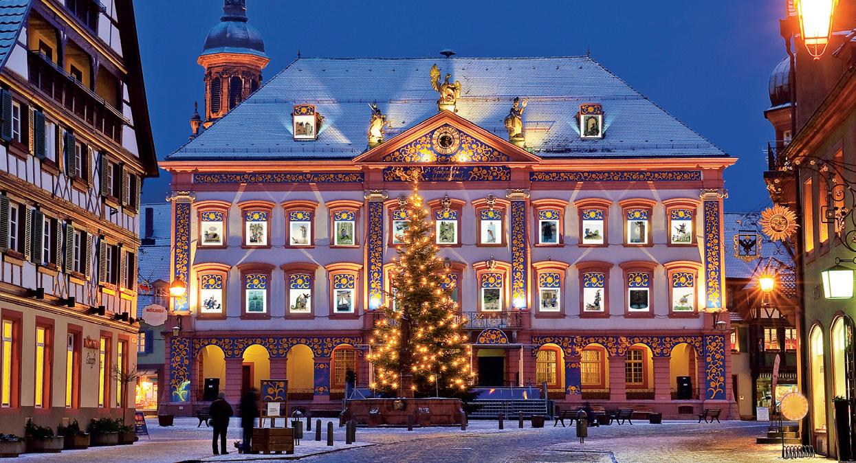 Feine und stimmungsvolle Weihnachtsmärkte locken auch im Nachbarland Deutschland. Zum Beispiel in Gengenbach im Schwarzwald. Vom 30. November bis am 23. Dezember verwandelt sich der Marktplatz mit 24 Fenstern in den weltgrössten Adventskalender. Werke renommierter Künstler wie Marc Chagall und Andy Warhol versetzen das Rathaus in ein Wintermärchen. Auch Antoine de Saint-Exupérys liebevolle Figur «der kleine Prinz» hat einen Auftritt. Um 18 Uhr beginnt jeweils das Ritual der Fensteröffnung am Rathaus. Sobald das 24. Fenster geöffnet ist, erstrahlt das Rathaus in voller Pracht. Für Unterhaltung sorgen ein attraktives Rahmenprogramm und die Angebote der Gengenbacher Museen. Wer noch ein Weihnachtsgeschenk braucht, wird