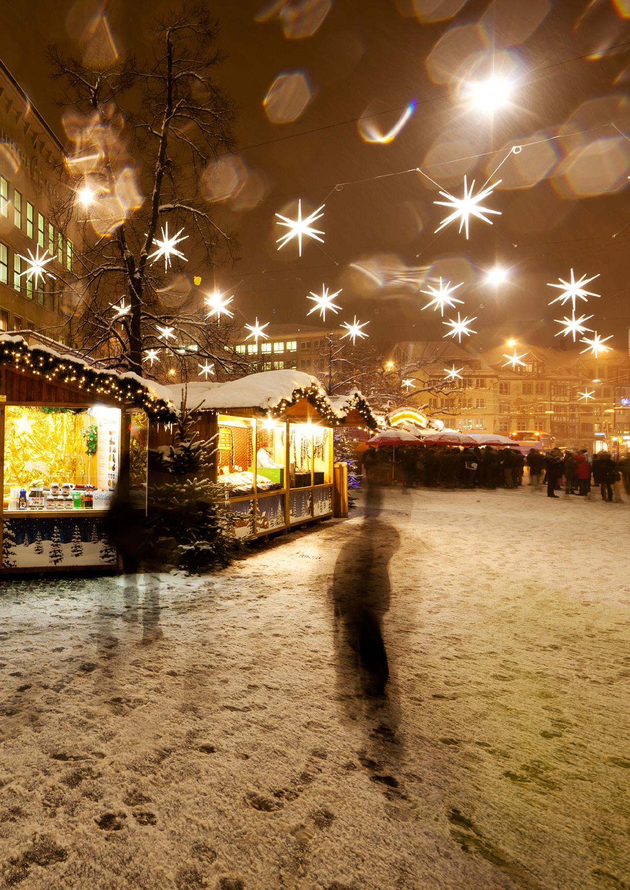 ihre Sterne für ein, zwei oder drei Jahre leuchten lassen. Zum Thema Sterne findet zudem im Kultur-Museum bis zum 3. März 2024 eine Ausstellung statt: Jost Bürgi, «Schlüssel zum Kosmos». Zudem zeigt das Naturmuseum ab Mitte 2024 die Ausstellung «Mensch und Universum». Der eigentliche Weihnachtsmarkt mit seinen Warenund Foodständen findet vom 30. November bis zum 24. Dezember statt.