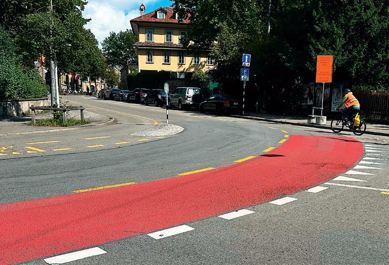 In manchen Fällen können rote Markierungen dazu verwendet werden, auf Gefahrenzonen für Radfahrer hinzuweisen, wie z. B. enge Kurven, Kreuzungen oder Bereiche, in denen die Sicht eingeschränkt ist.