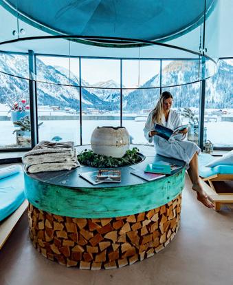 Natürlich darf eine weitläufige Saunalandschaft nicht fehlen, die die körperliche Regeneration unterstützt – beispielsweise nach einer herrlichen Wanderung oder einem Skitag. In einen harmonischen Gleichklang gelangt der Gast in der DampfKamillen Grotte und in der Erdsauna. Mit einer Flasche Sekt oder gutem Kaffee kann man es sich drei Stunden im Private Spa gemütlich machen. Qualifiziertes Ayurveda in fünf Behandlungskabinen, Mauli Rituale und die hauseigene Pflegelinie Jungbrunn verwöhnen, beispielsweise in Kombination mit einer sanften Massage. Speziell geschult sind die JungbrunnTherapeuten auch in Faszienmobilität und sportbezogenen Anwendungen.