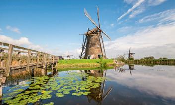 UNESCO-WELTKULTURERBE WINDMÜHLEN VON KINDERDIJK TULPENBLÜTE IM FRÜHLING