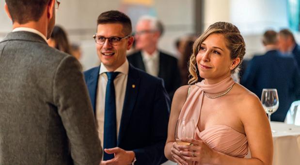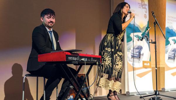 Musikduo Matthieu Trovato & Georgia Ciavatta. Neben der ausgezeichneten Kulinarik gab es für die Gäste der Jubiläumsveranstaltung auch noch viel Zeit, in angeregten Gesprächen ihre mobile Leiden schaft zu leben. -> Fortsetzung auf Seite 8