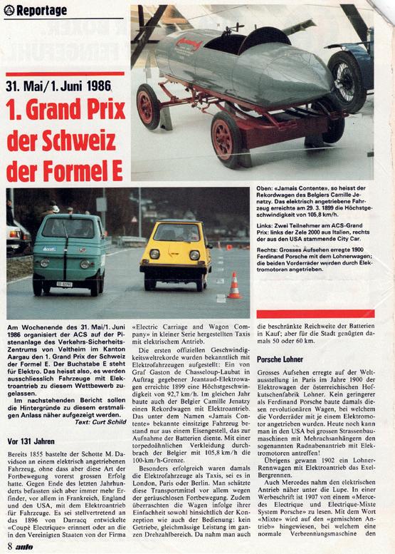 Im Sommer 1986 führte der ACS auf der Piste des SSZ Veltheim den 1. Grand Prix der Schweiz der Formel E durch. Mit dieser Ausgabe schliesst unser Autor Bernhard Taeschler seine vielbeachtete Serie mit viel Wissenswertem aus der Clubgeschichte nach rund drei Jahren ab.