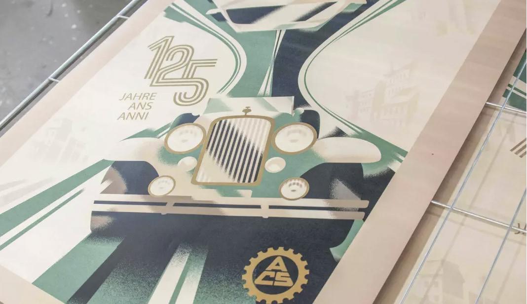 Zu seinem 125-Jahr-Jubiläum hat der ACS etwas ganz Besonderes erschaffen lassen – ein Stück Zeitund Clubgeschichte. Die Auflage des Jubiläumsposters, das gestaltet wurde vom international bekannten dänischen Künstler Mads Berg, ist streng auf 125 Stück begrenzt. Die Plakate wurden im Siebdruck mit fünf Spezialfarben gedruckt. Das Rotgold enthält echtes Silber – es sorgt für einen reizvollen metallischen und irisierenden Effekt. Gedruckt wurde das Jubiläumsplakat im Siebdruckatelier von Lorenz Bögli in Müntschmier BE. Weitere Informationen und Bestellungen online unter acs.ch/poster
