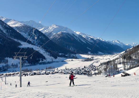 lich machen. Die meisten dieser Strecken sind zwar künstlich beschneit, doch wegen ihrer nördlichen Ausrichtung sind die Schneeverhältnisse auch sonst hervorragend. Wer noch nicht so sicher auf den Latten steht, nimmt das Förderband und verbessert seine Skills auf der Anfängerpiste. www.lovevda.it