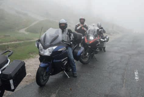 Ausnahmsweise dichter Nebel und Nieselregen statt weite Aussicht auf dem Vršic-Pass.