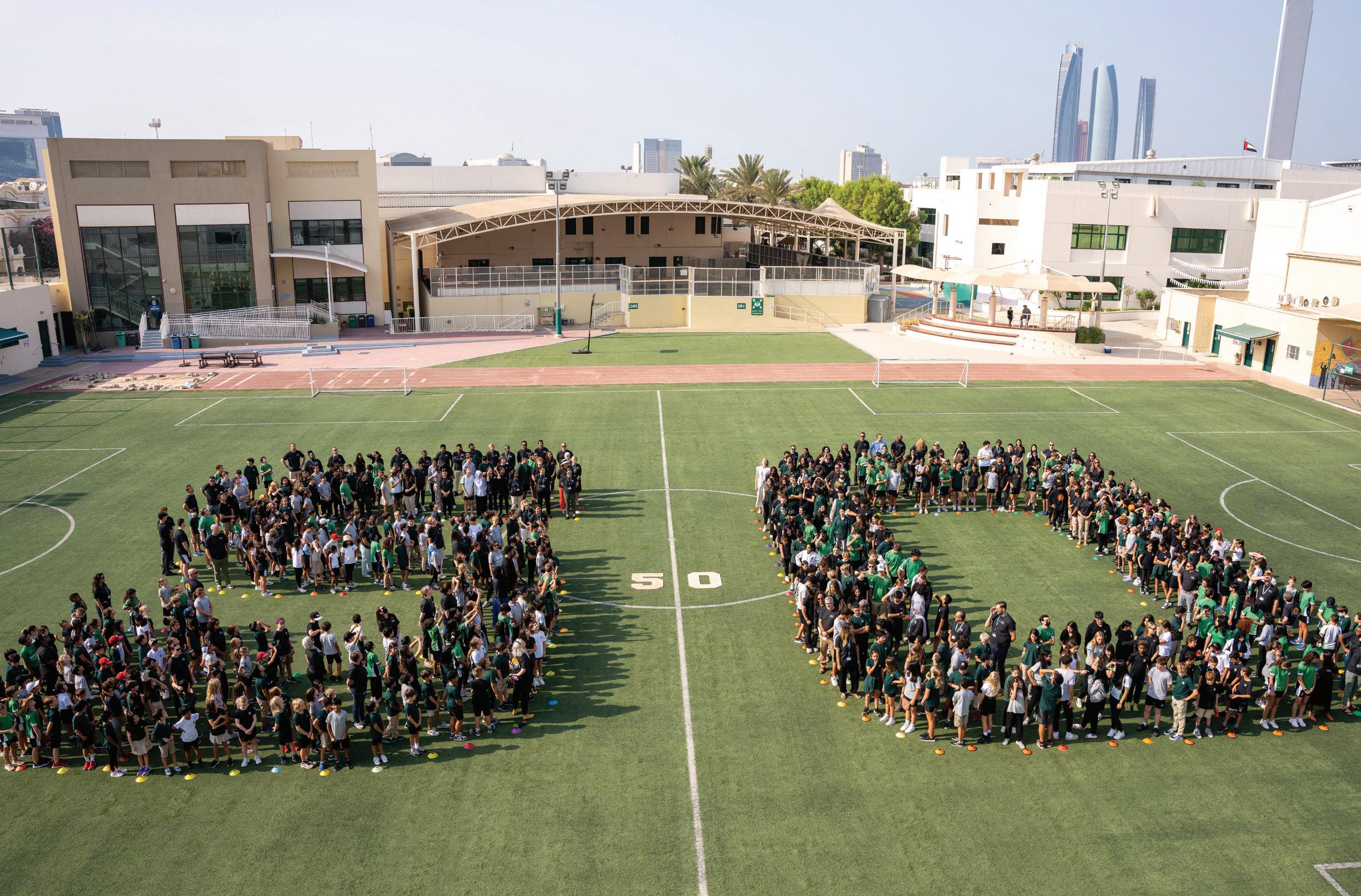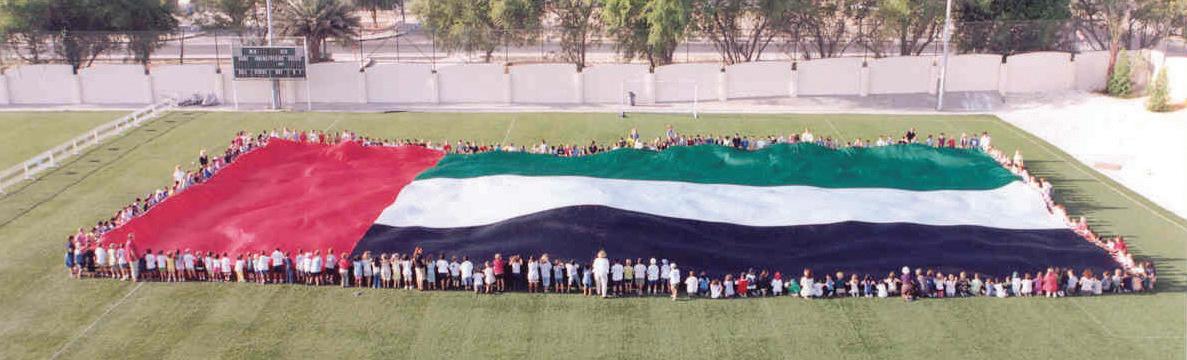 A big thanks to former ACS parent David Chambers, owner of the Trident Support flag company, for the brilliant idea and help to recreate the original picture from 2001, with hundreds of our students and staff holding up the 20mx40m UAE flag.