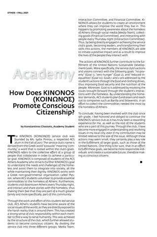 ACS Athens Ethos, Fall 2021