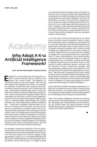 Why adopt a K-12 Artificial Intelligence framework? by Dr. Antonis Karampelas