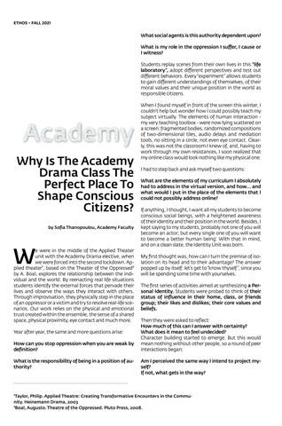 Why is the Academy Drama class the perfect place to shape Conscious Citizens?
