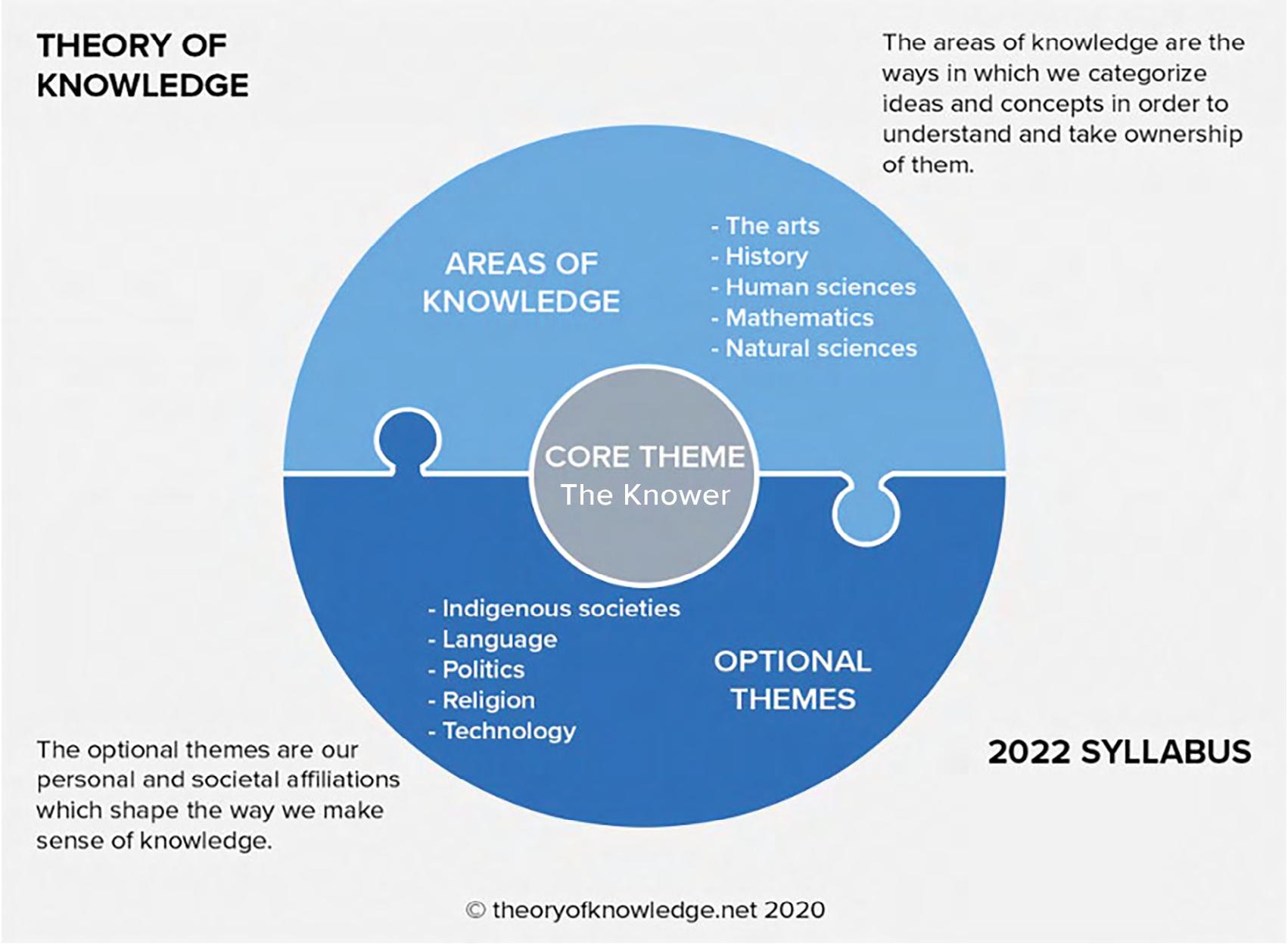An underlying theme of the new TOK course is a greater focus on ethics, which will now be embedded throughout all themes and Areas of Knowledge. Students will be encouraged to focus on ethical concerns relating to how knowledge is produced, acquired, applied, shared and communicated.