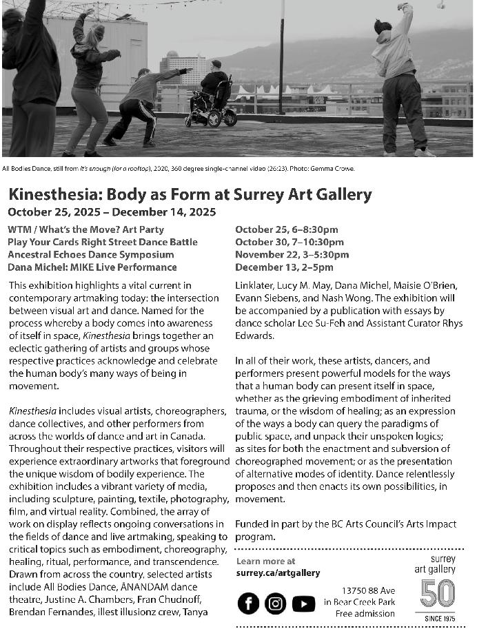 ACS celebrating 58 years! SPOTLIGHT on the ARTS is an arts news-magazine published by the Arts Council of Surrey, BC, Canada to promote the Visual, Performing and Literary Arts. www.artscouncilofsurrey.ca | Twitter: @surreyarts | Instagram: @ArtsCouncilofSurrey | Facebook: /ArtsCouncilofSurrey | Be Safe. Be Creative. Be Yourself. #artspot #ACSgallery #ACSGalleryTalk #artshop @NCCforArts #SPOTLIGHTontheARTS #TheSPOT #BCartscouncils #IAmACreative @artscouncilofsurrey #SurreyArts&Culture #arts #perform #visual #literary @youthartsca