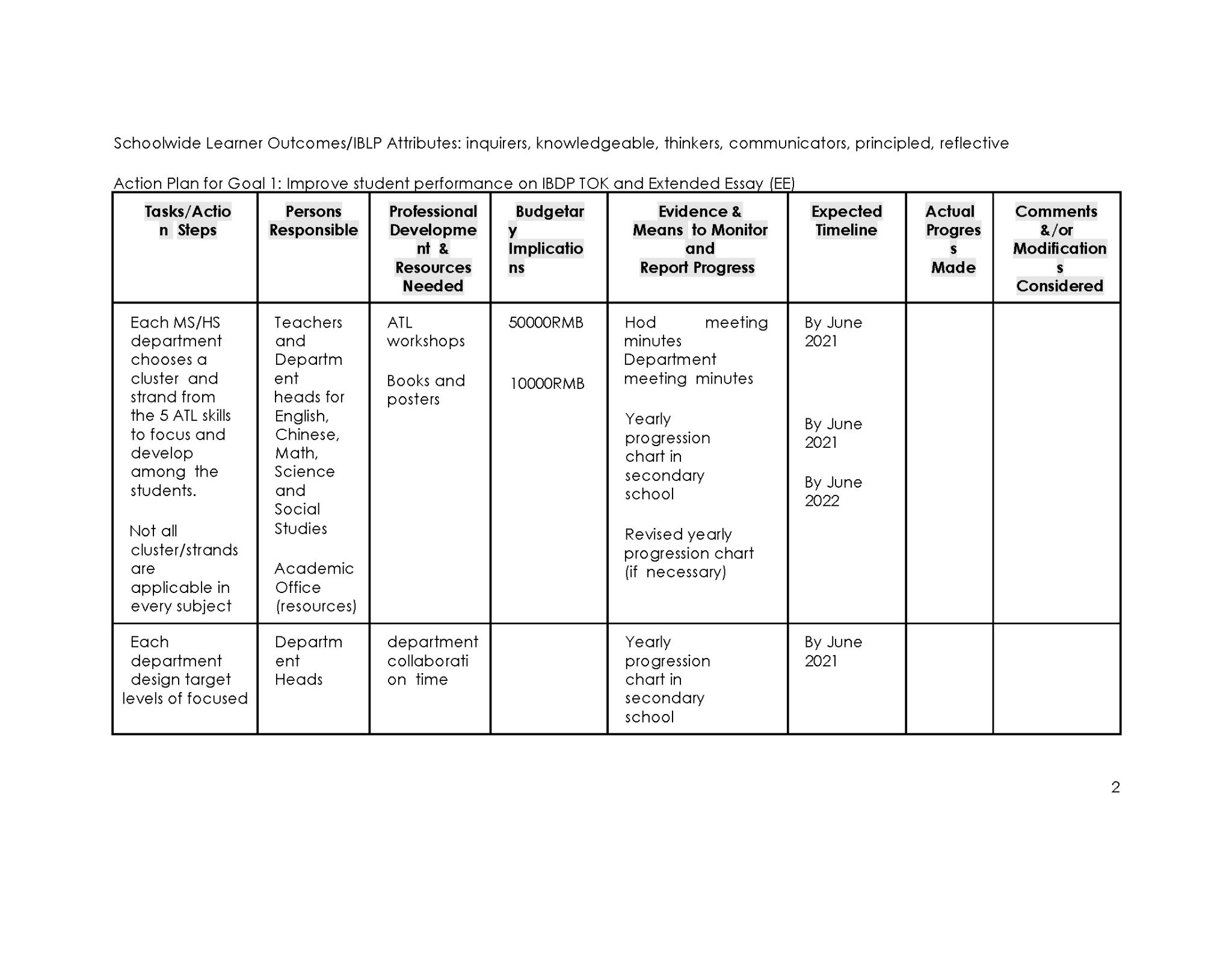 F. Sample of Schoolwide Action Plan (2)