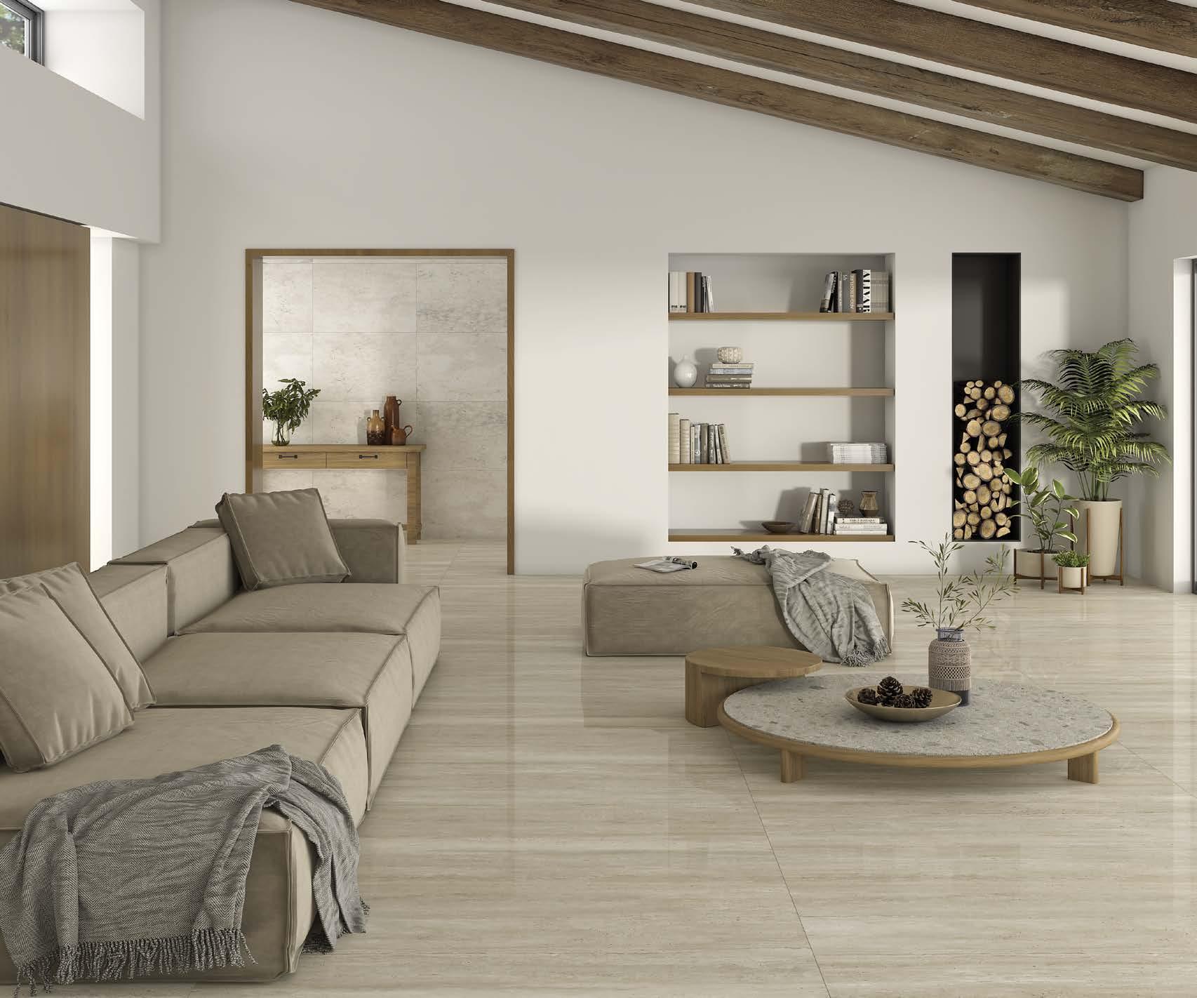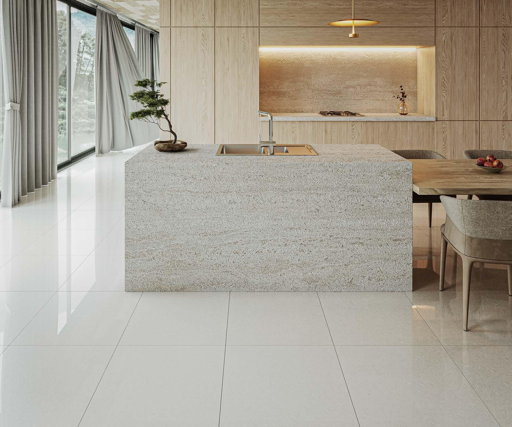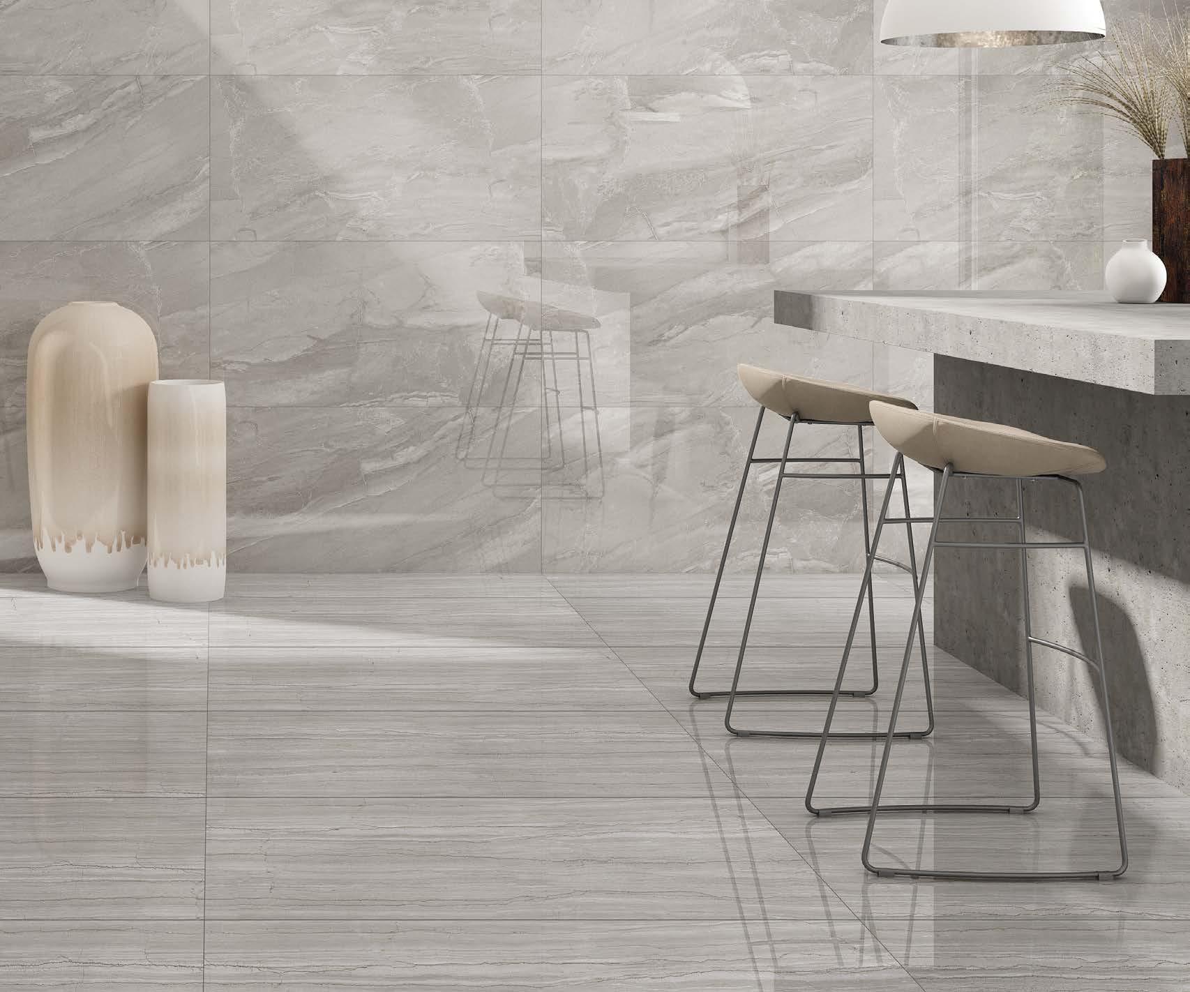 * El acabado pulido se sugiere para uso interior y esta disponible en el formato 59.3x119 en el color Bone.