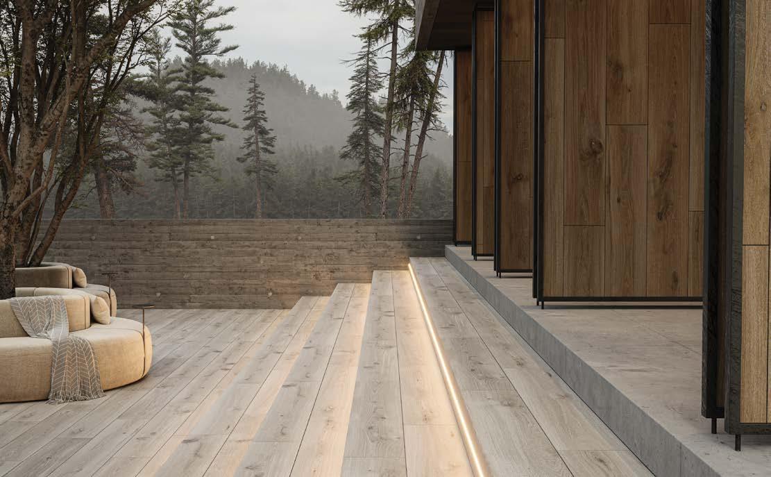 LA MADERA ES UN RECURSO NO RENOVABLE Y SU EXTRACCIÓN CAUSA DAÑOS IRREVERSIBLES. AL EMULAR LA CALIDEZ Y LA TEXTURA DE LA MADERA NATURAL, PROMOVEMOS UNA ESTÉTICA ECOLÓGICA Y SOSTENIBLE.