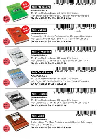 Actar Publishers 17 x 24 cm. Flexibound cover. 288 pages. Color images ISBN English 978-84-95273-55-0 / Spanish 978-84-89698-88-8 32€ 19€ / $39.95 $24.95 / £25.95 £16.50