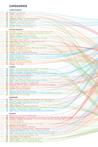 D.Mah • Advanced Landscape as Digital Media: Fabricating Grounds E.H.Jazairy • Advanced Research Seminar: School for Year 2030 M.Ibanez, A.Sayegh • Augmented Architecture E.Blau • Baku: Oil City J.Mosley, D.Zlateva • Landscape as Animation H.Sarkis • New Geographies: Imagining a City-World Beyond Cosmopolis L.A.Villoria • (Re)Fabricating Tectonic Prototypes A.Witt • Topics in Parametric and Generative Geometry and Modeling