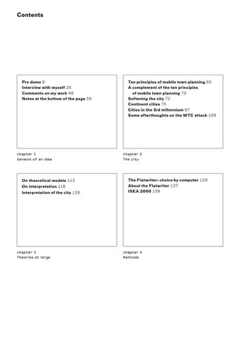 Ten principles of mobile town planning 65 A complement of the ten principles of mobile town planning 70 Softening the city 72 Continent cities 75 Cities in the 3rd millennium 97 Some afterthoughts on the WTC attack 109