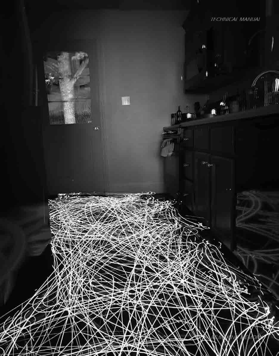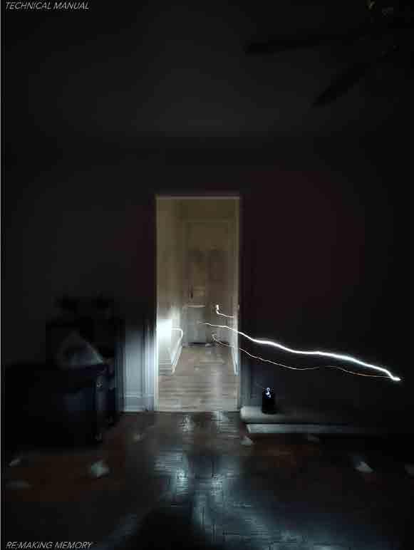 This thesis project studies the representation of implicit space as pertains to the confines of a home. It utilizes creative technology in order to capture “everything but the architecture” in an attempt to understand the memories and meaning that the space around us holds. This is achieved through an Arduino mounted on a ZumoBot, which is allowed to roam the interior of a home. A long exposure photograph is then taken to capture the movement of the robot through space.