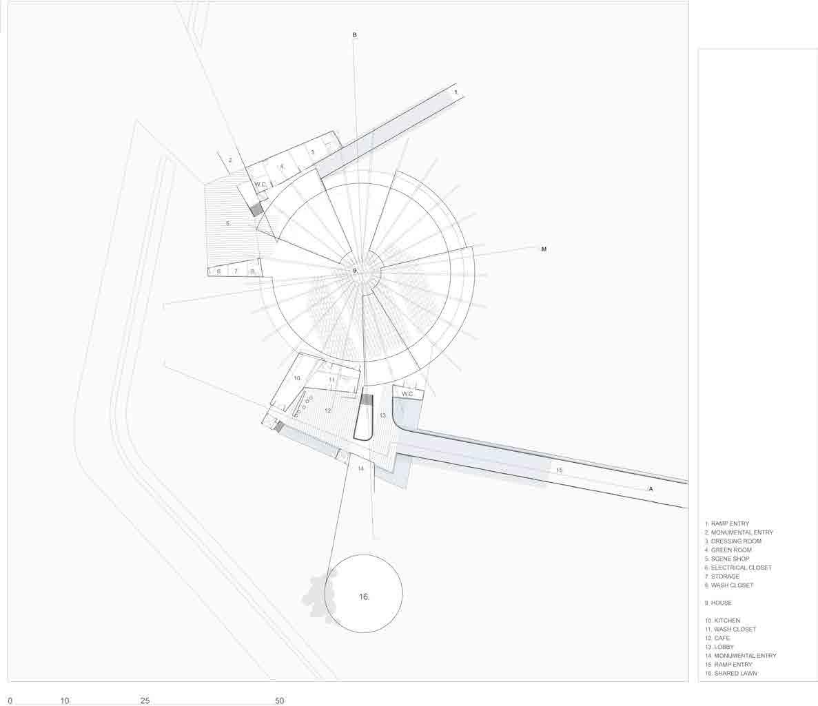 Located in Avignon, France, the proposed theatres house the annual Festival d’Avignon in three components: the permanent theatre, the seasonal theatre, and the ampitheatre. The site is located on an uninhabited peninsula north of the center of Avignon. The area surrounding the theatres are landscaped in order to cater to the experience of entering a world of theatre and dramatics. this is achieved through a series of portals and landscape features that guide visitors along the designated path.