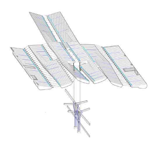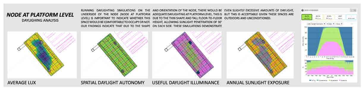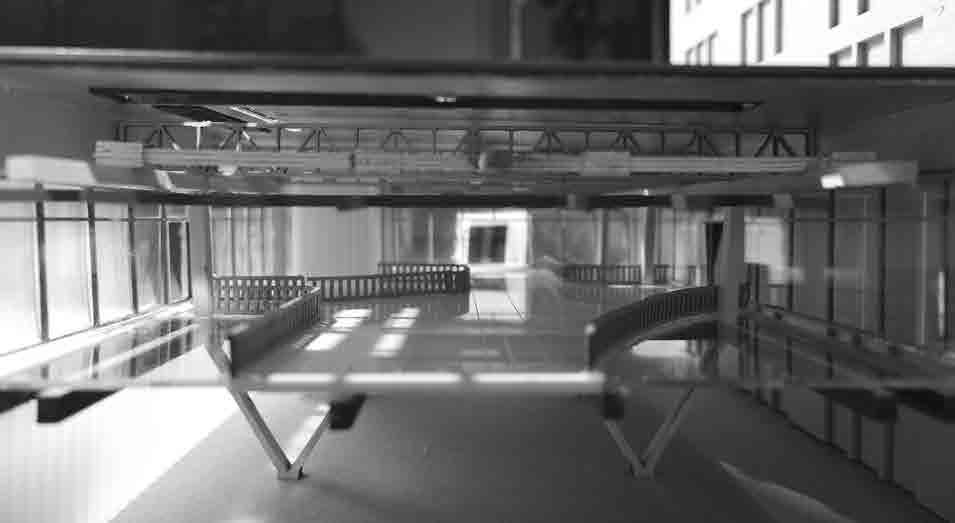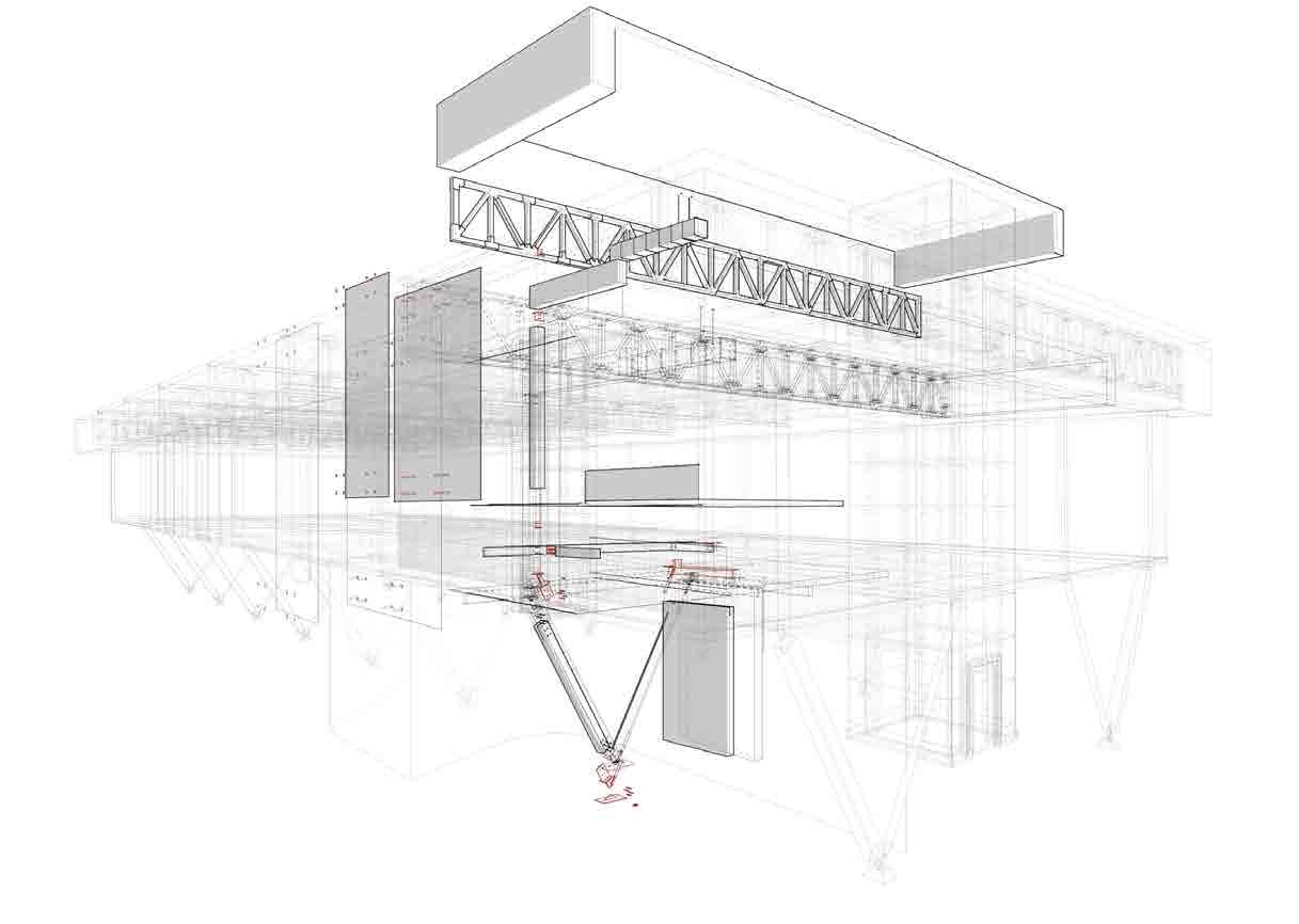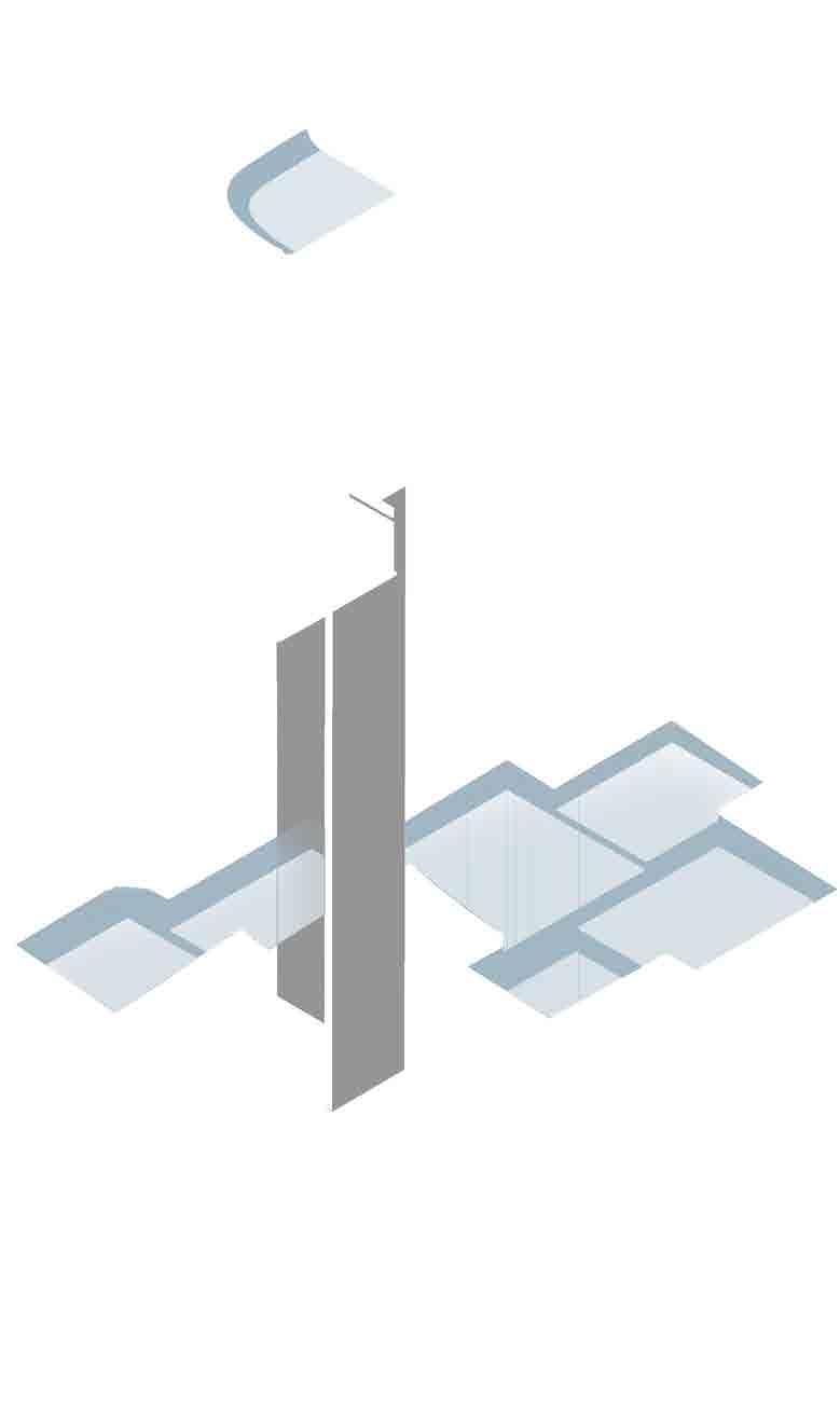 Compositionally, the placement and organization of the elevated pedestrian ground aligns both with the existing street grid of the Strip District, and connects to the speculative future grid of the Lower Hill district. In order to condition the density required for an elevated pedestrian network at this scale, a compositional urban framework with larger centers of localist cultural activity emerged. Three “nodes” of Pittsburgh localism are positioned throughout the project, tying together activity along the project’s long span. Each node has a different raison d’etre, and exists symbiotically with a flexible mixeduse tower rising up from it.