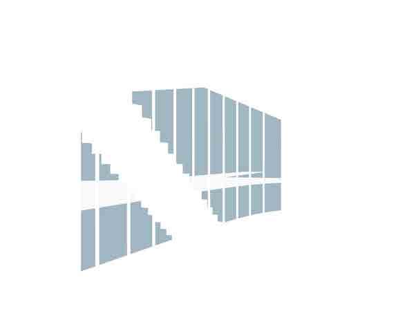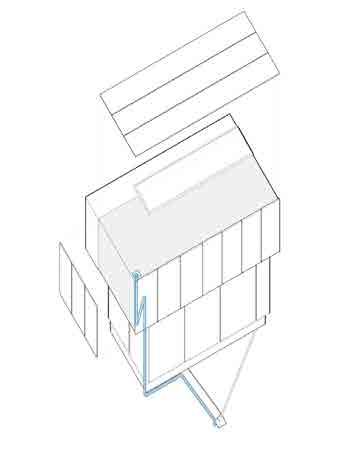 A series of modules makes up the structure, with each consisting of four housing units that share two entryways, utilizing the skip stop and creating a gradient of public places, moving from the platform shared by all four households, to the entry space shared by two before moving into each individual unit.