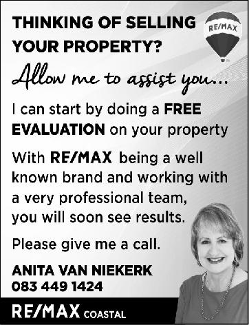 AS JY JOU HUIS WIL verkoop, |wie gaan jy bel? RE/MAX natuurlik! 044 382 5722 of www.remaxcoastal.co.za