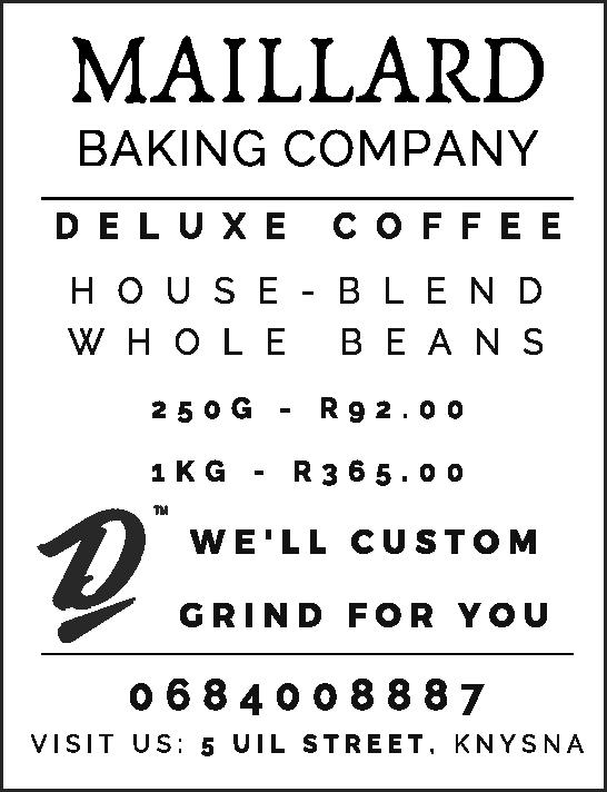2 Receive a reply with time for collection 3 Collect your order & enjoy great quality food ready for eating 4 TAKE-AWAY now available again. 08h00 - 14h00 HOMEMADE PIES 33 Sandpiper Str, Indr • 072 347 3580 Plum Personnel Elmarie Weis 082 400 7875 info@plumpersonnel.co.za l www.plumpersonnel.co.za 076 570 4199 avrolvanrooyen5@gmail.com HANDYMAN EXTRAORDINARY • Tiling - New / Repair • Painting • Decking - New / Repair • Carpentry • Fencing - New / Repair • Repairs & Maintenance