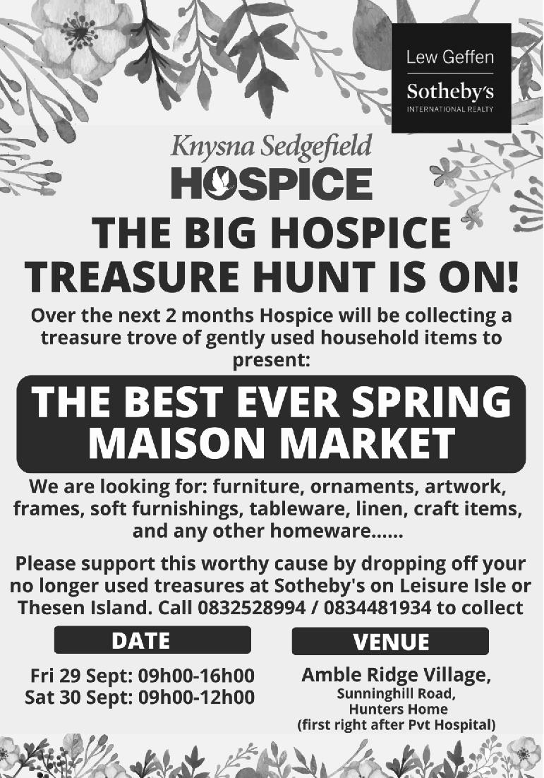 Come and enjoy the amazing views, gardens and inspiring interiors of these spectacular homes that are open for viewing in aid of Knysna Sedgefield Hospice. Light, complimentary refreshments available along the way
